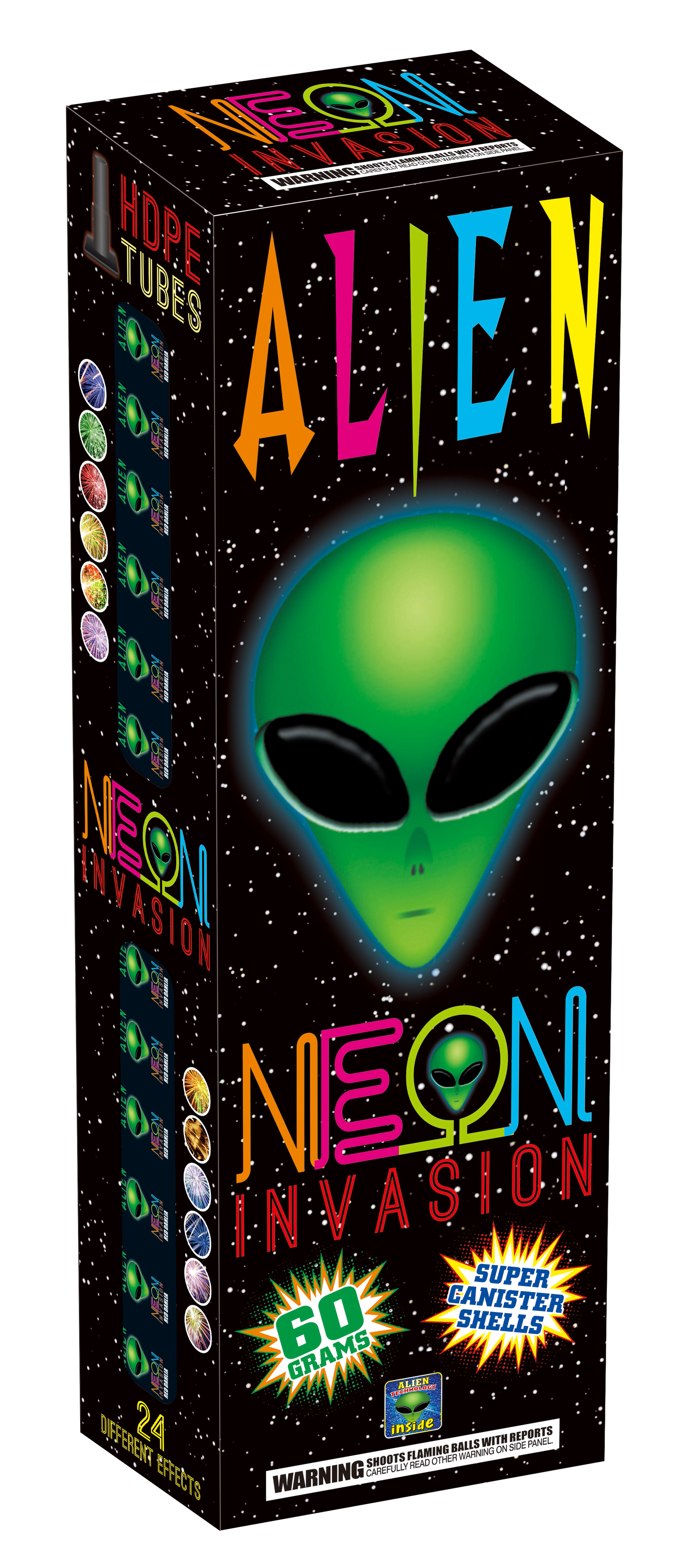 NEON INVASION 60 GRAM CANISTER SHELLS (CASE) 4/24